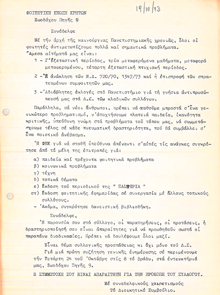 Πηγή: Ενότητα 3: Η κατάληψη της Νομικής | eStories.uoa.gr